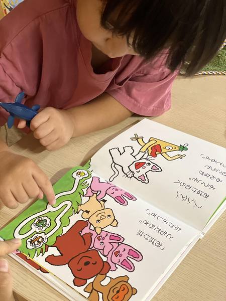 こうやって絵本で何度も指でなぞりながら読めるのも