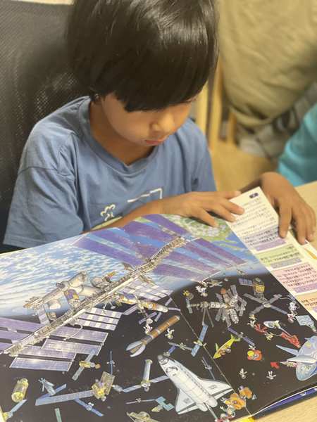 恐竜、乗り物、宇宙などの「絵を見て話す」ことや「迷路をすること」など