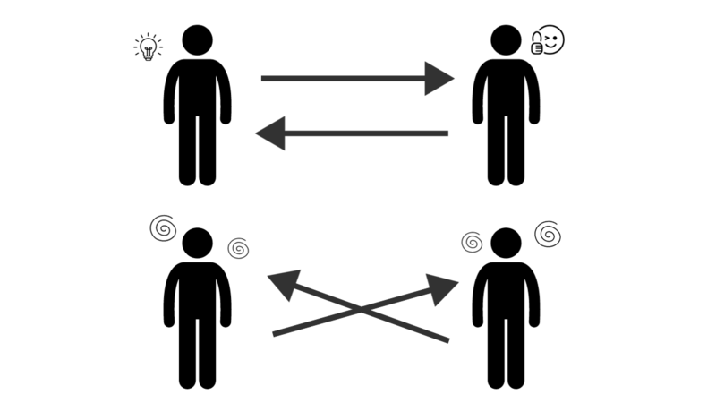 コミュニケーションでは人との間に様々な方向の「矢印→」が飛び交っています。