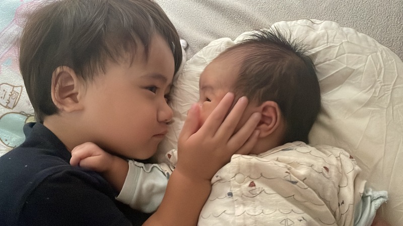 「そうか。いつも譲ってばかりで嫌になるよね。ごめんね(平行/謝罪)。弟はさ、お兄ちゃんの持ってるものが使いたい気持ちになっちゃうんだって(通訳)」
