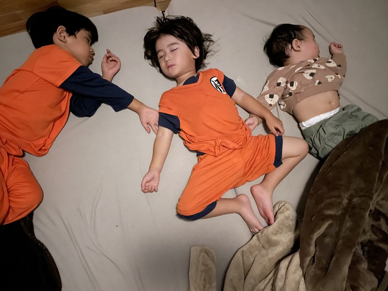 でも相変わらず我が子たちはママが起きると5分後には起きちゃうことが多い。