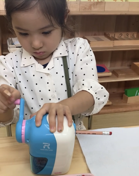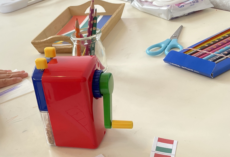 ◉電動削りについては指や鉛筆以外のものを入れるとどうなると思う?などと話をしながらルールを教える